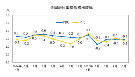 2025年5月份居民消费价格同比下降0.1%    2025年5月份,全国居民消费价格同比下...